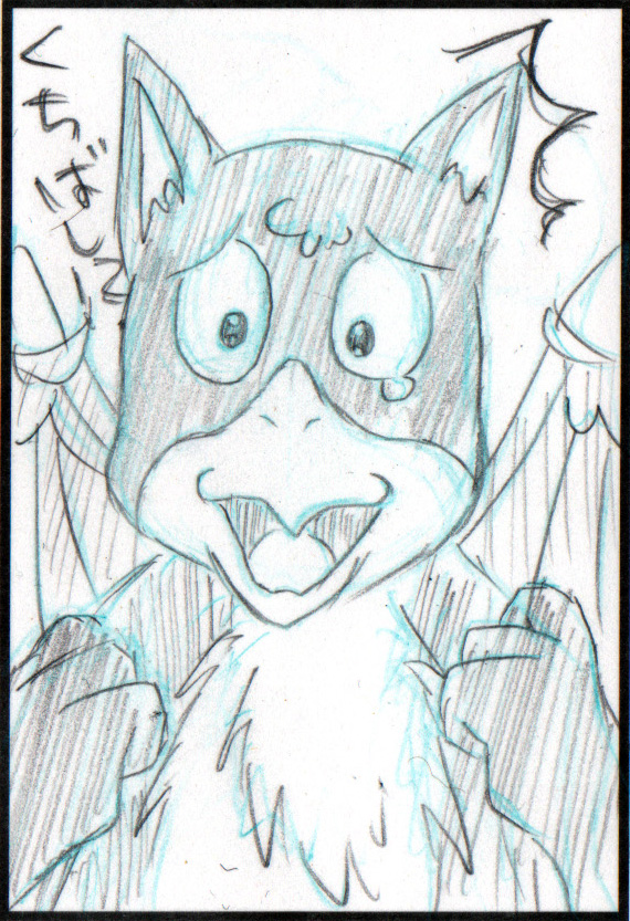 烏の魂が一匹取り憑き、くちばしになってしまったこうもり猫。