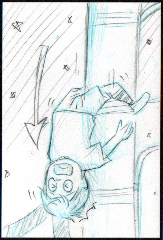足だけで電柱につかまりずり落ちていく