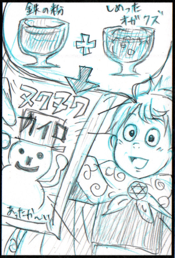 接触すると鉄が錆びて熱を出すんだ。ヌクヌクカイロとおんなじさ!」