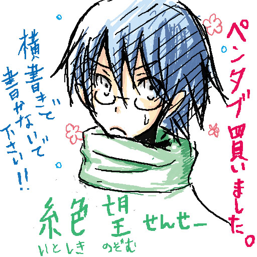 × [PR]上記の広告は3ヶ月以上新規記事投稿のないブログに表示されています。新しい記事を書く事で広告が消えます。 おにゅー のペンタブ買いました♪(*・∀・*)゛BAMBOOの“BAMBOO COMIC”です。 漫画を作成することの出来るソフトのついた優れモノ。 っていうかまぁただ単に高校の頃から使ってるやつがホントぼろくなったんで買い換えただけなんですけどww 1年全然絵をかかないでいたらほんと最近すごいことになってます。 っていうか絵を描く前に小説を書けとか言わないでください……。 落書きはあずまにとってはストレス解消法でもあるので;; 記念すべき1回目の落書きは先生で。でも時間なくて10分くらいで書いたからちょーなりきだよ(*・∀・*);; はじめ奈美ちゃんか命にぃにしようかと思ったんですけどやっぱり先生で。 使い心地はなかなか良いですww ワンタッチするたびいちいち小さな波紋が起きるのがやたら可愛いんですがww でもこんなのかっちゃって時間もお金もないんだけどね……ぁーあ、絶望した(・∀・)゛ PR この記事にコメントする