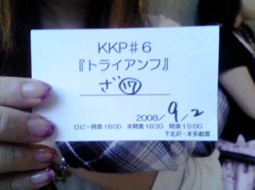 めんどくさがりなくせになんでか高校生のころから毎日ブログ更新しないと気が済まないというか、既に日課になってしまっていたというか……。 最近更新したい記事すら更新してる暇がないからね。たまの更新も深夜だし……orz さて、これもまた忙しくて報告していなかったことですが、待ちに待った今日8月23日はKKP『TRIUMPH(トライアンフ)』の初日公演です!! 実は密かにチケットGETしてました!! 仕事が忙しくて当日行けなくなることも覚悟の上で取ったチケット! 正直初日は夜公演なので体力的には相当つらいのですが、めいっぱい楽しんできたいと思います! ただひとつ気になるのは今日は初日公演なんだよなぁ……。 やっぱ初日ってすごく得した気分になるけど、コバケンの場合最後に行けば最後に行くほどくだけてくるからな……そう言う意味での楽しみがいのあるのはおそらく後の方だろうなぁ。『TAKE OFF』の千秋楽はよかったもんなぁ。泣いてたオレンジさんとコバケンが可愛かったですよ。 前回は久ヶ沢さん以外のコバケンファミリーは出てなかったですから、今回は生のふみちゃんや犬飼さんが観られるのは楽しみ♪ またコバケンの生の歌声聞けるかしら?(ドキドキ) ところで余談ですが…… 今回の作品のタイトルにもなってる“トライアンフ”という言葉は、以前小林さんが書籍『ラーメンズのつくる人凸』の中で話されてるマジックと同じ名前ですよね。一番最初はプレイヤーとしての目覚めだったって言う。 小林さんにとってはそれが一番最初のきっかけだったわけですよね。 そんな小林さんにとって原点とも呼べるべき言葉が、今になって作品のタイトルとして選ばれる。このことに深い意味を考えさせられてしまったのは私だけでしょうか? |
